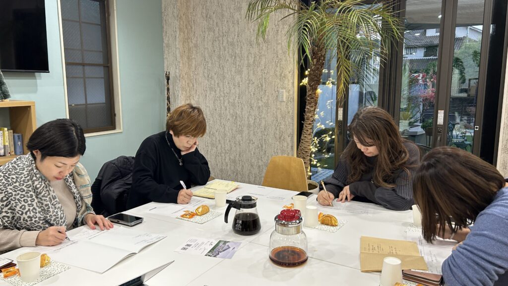 「神愛キリスト教会」さまのカフェのような温かい素敵な空間をお借りし、皆さまのバックグラウンドを伺いながら、日々の疑問や課題の解消につながるよう、理念づくりやブランディングの考え方をお伝えしました。